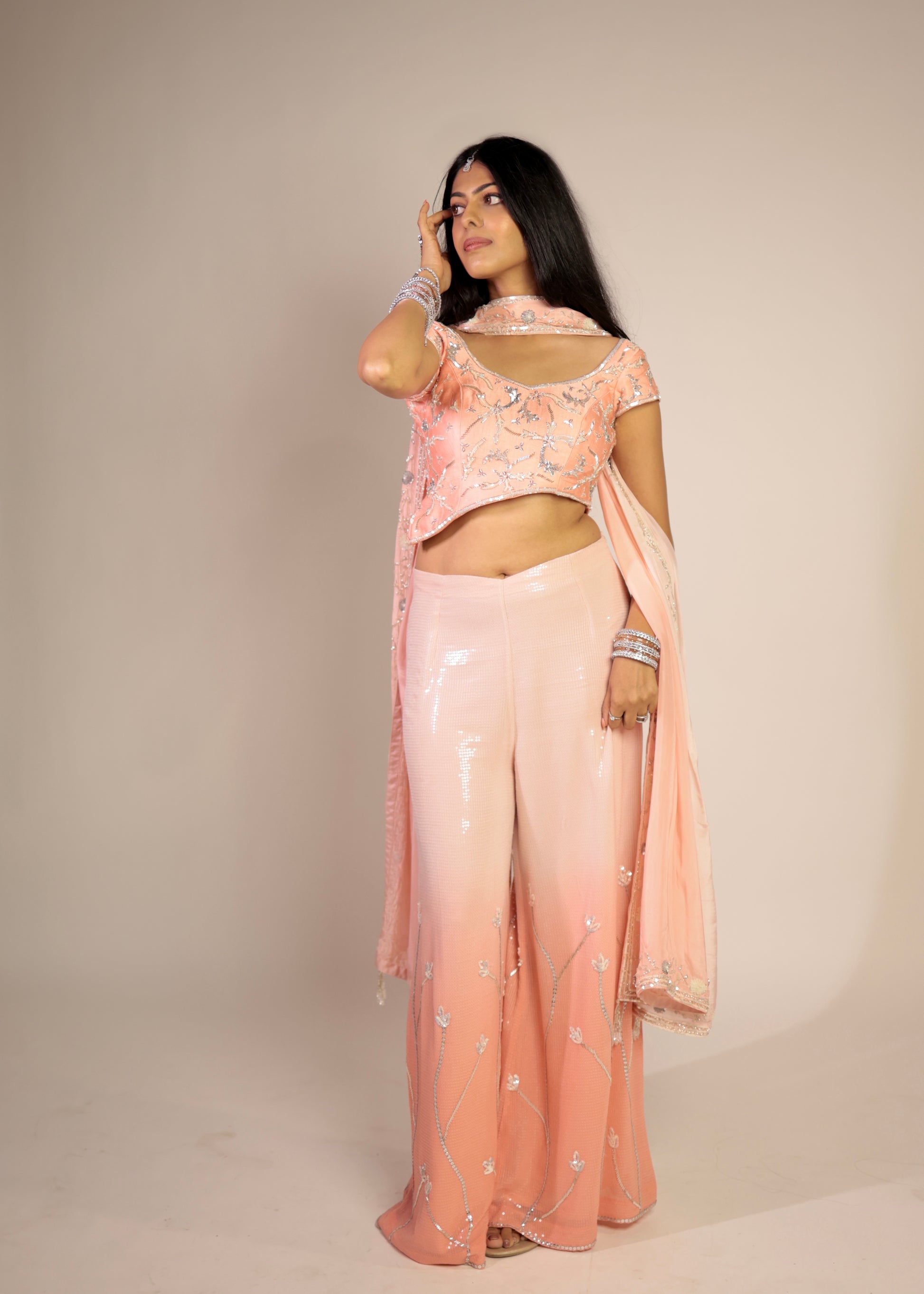 - Fabric: Chiffon & sequined georgette