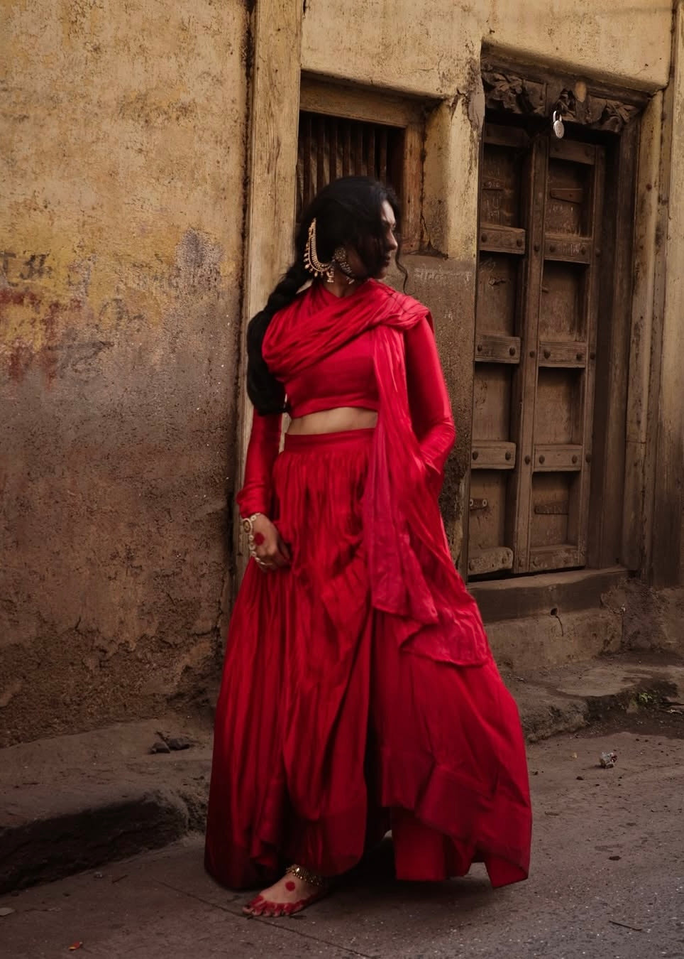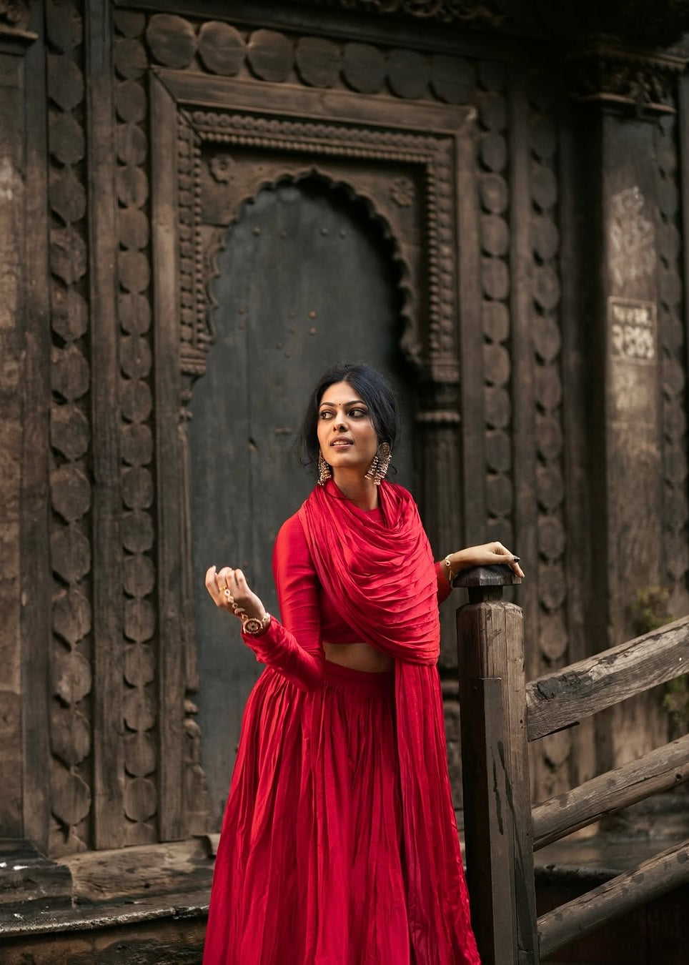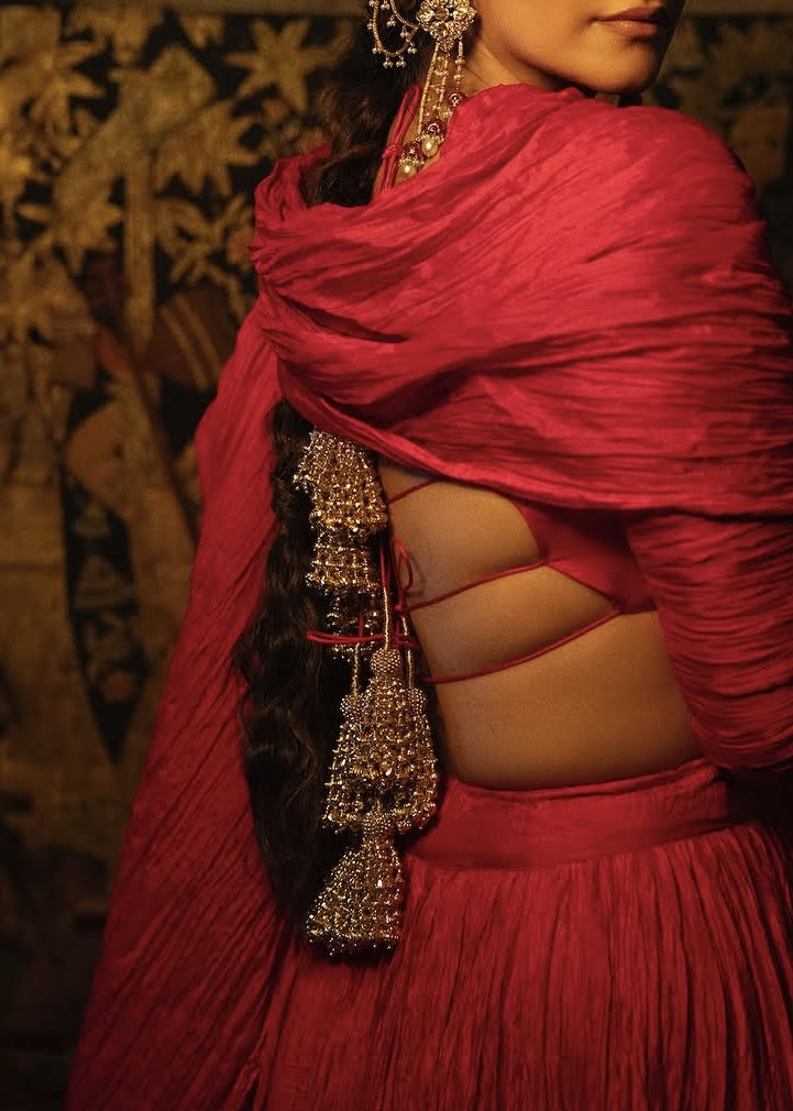Step into timeless elegance with this exquisite lehenga in a rich, vibrant pinkish red. Crafted from luxurious modal silk, known for its lustrous finish and smooth texture, this lehenga drapes beautifully, exuding sophistication with every movement.